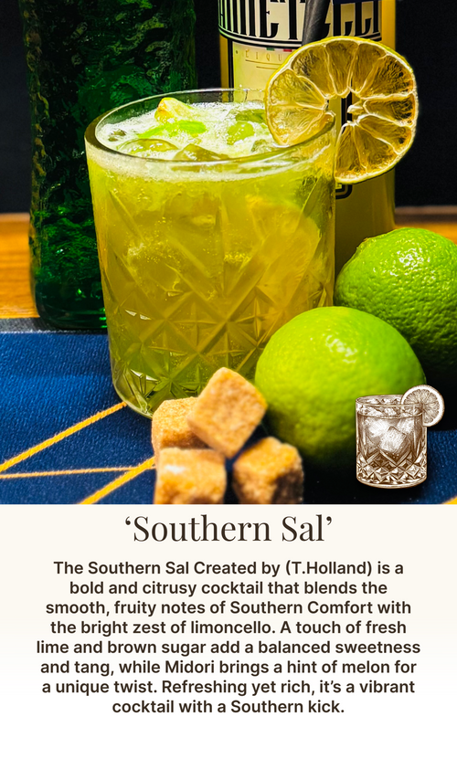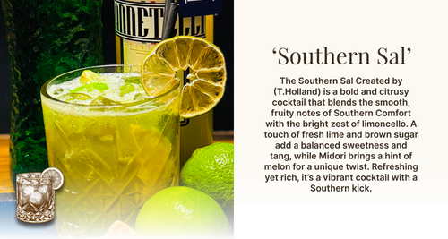 A rich, citrusy cocktail with a smooth Southern kick and a touch of sweetness. Designed and Created by (T.Holland)